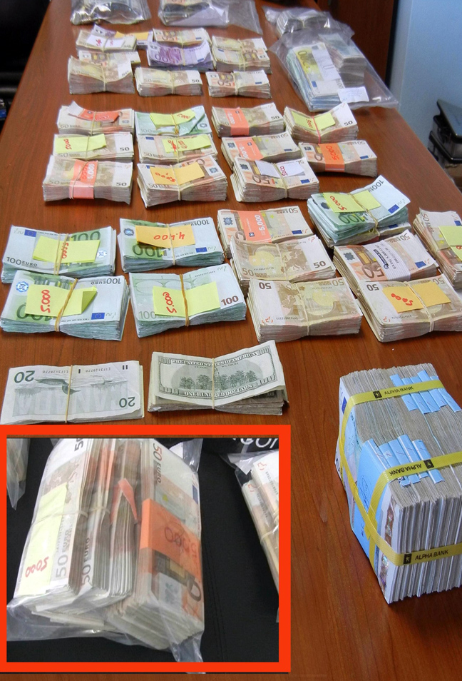 Στο πλαίσιο των ερευνών βρέθηκαν και κατασχέθηκαν μεγάλα χρηματικά ποσά, βιβλιάρια τραπεζικών καταθέσεων, ομόλογα, συμβόλαια αγοράς ακινήτων, πολυτελή αυτοκίνητα, σκάφη, συστήματα ηλεκτρονικών υπολογιστών, ηλεκτρονικός εξοπλισμός παρακολούθησης, ναρκωτικά κ.λπ.