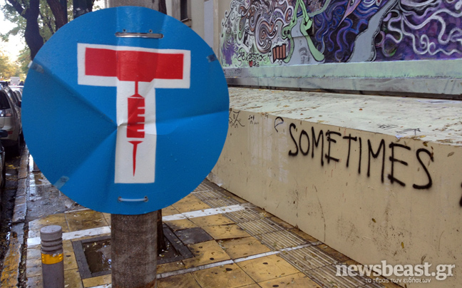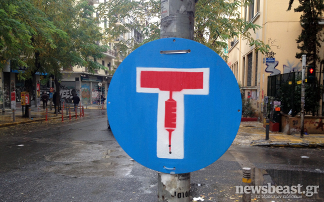 Σε άλλη πινακίδα προειδοποιούν ότι στα επόμενα μέτρα κάποιος χρήστης παίρνει τη δόση του.