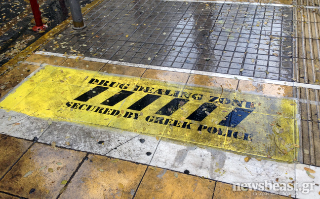 «Ζώνη ναρκωτικών που προστατεύεται από την ελληνική αστυνομία» γράφουν σε πολλά σημεία της περιοχής για να δείξουν την απουσία των αστυνομικών.