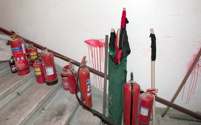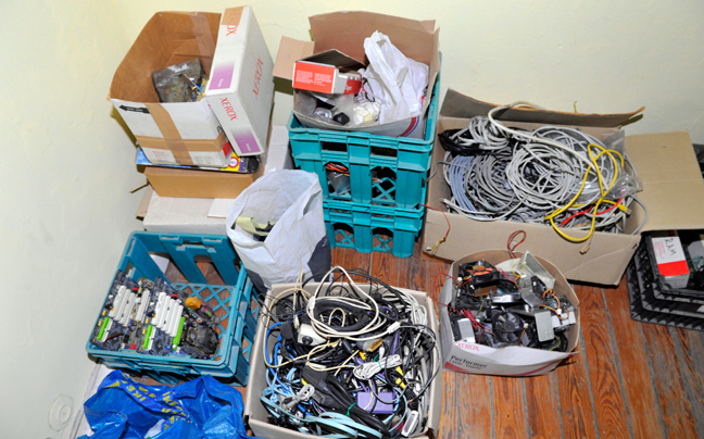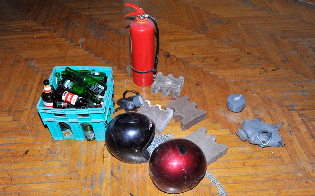 Εντός του κτιρίου έχουν βρεθεί, μέχρι στιγμής, μεγάλος αριθμός από μπουκάλια, κράνη, αντιασφυξιογόνες μάσκες, ηλεκτρονικοί υπολογιστές και διάφορα εξαρτήματα όπως στικάκια USB , σκληροί δίσκοι κ.λπ., αναφέρει η ανακοίνωση της ΕΛ.ΑΣ.