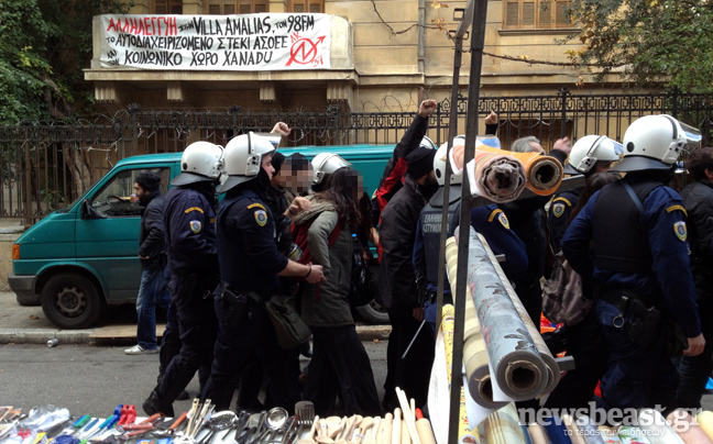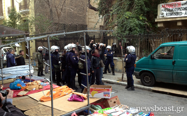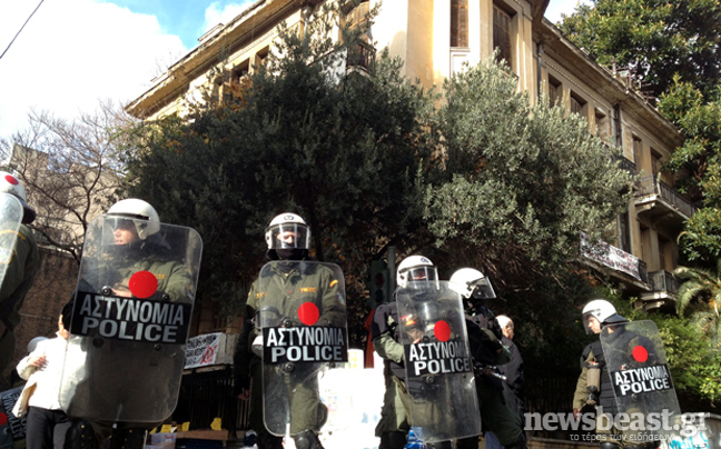 Οι αστυνομικοί επεμβαίνουν στο κτίριο μετά τις ανακοινώσεις του υπουργού Δημοσίας Τάξεως ότι θα προχωρήσουν σε τέτοιες επιχειρήσεις.