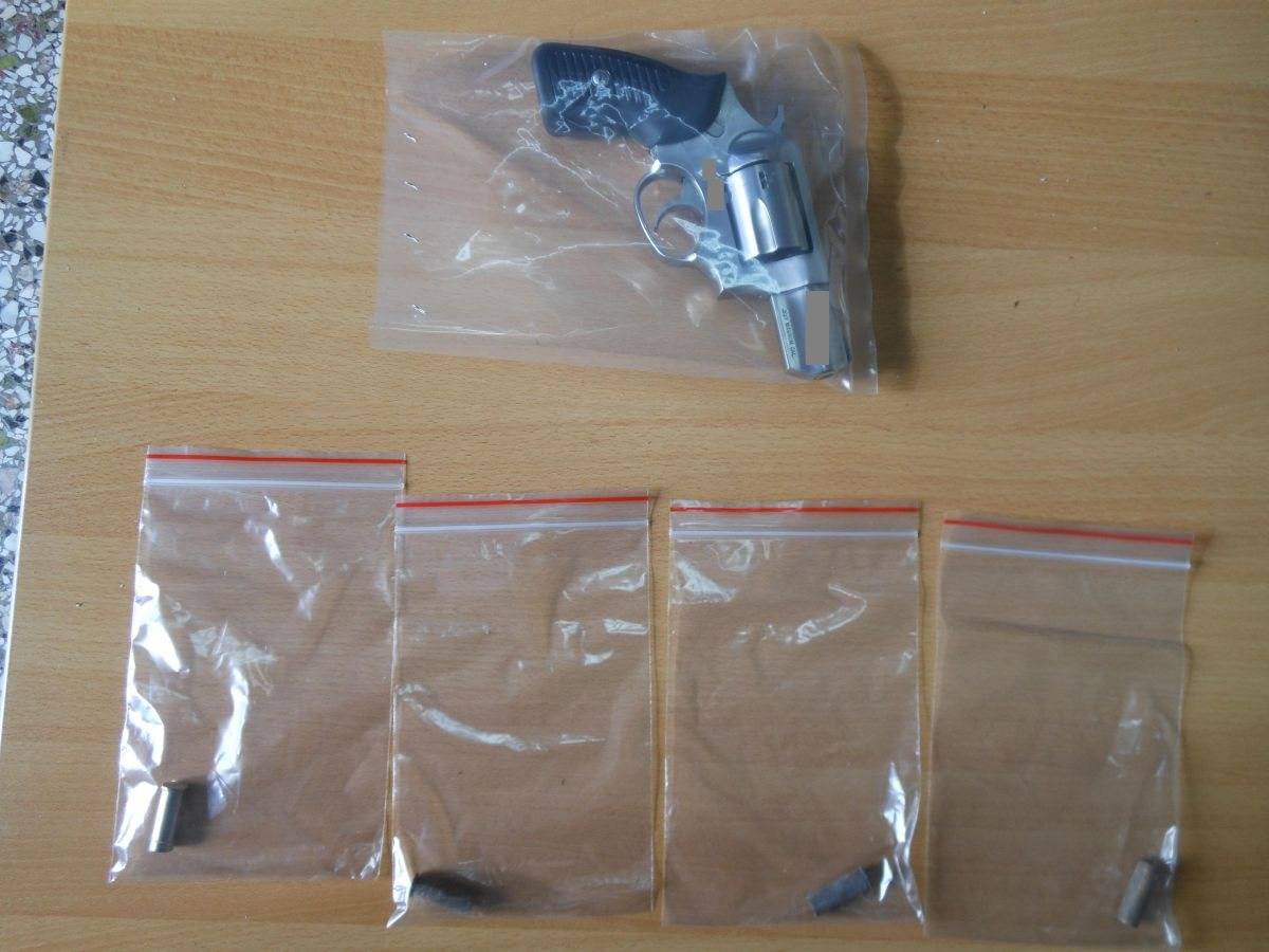 Από τους αστυνομικούς βρέθηκε και κατασχέθηκε σε ισόγειο αποθηκευτικό χώρο της οικίας του, σε περιοχή της Αττικής, επιμελώς κρυμμένο κάτω από βάση δεξαμενής πετρελαίου, ένα περίστροφο, το οποίο όπως διαπιστώθηκε κατείχε παράνομα.