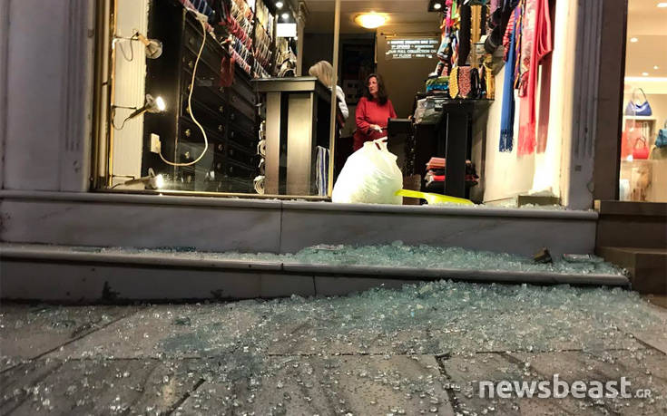 Με καλυμμένα τα χαρακτηριστικά μία ομάδα περίπου 30 ατόμων πραγματοποίησε καταδρομική επίθεση σε καταστήματα στο κέντρο της Αθήνας και στην περιοχή του Κολωνακίου, προχωρώντας σε πολλές καταστροφές.