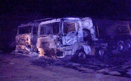 Πηγές της εταιρείας ανέφεραν ότι γύρω στη μία μετά τα μεσάνυχτα, 150 περίπου άτομα που φορούσαν κουκούλες εισέβαλαν στο χώρο του εργοταξίου από την πίσω πύλη και αφού ξυλοκόπησαν, έδεσαν και περιέλουσαν με βενζίνη τους φύλακες της εισόδου, έβαλαν φωτιά στις εγκαταστάσεις καίγοντας τρία φορτηγά, ένα γκρέιντερ, εκσκαφείς, δύο τζιπ, δύο γεννήτριες και τα κοντέινερς όπου στεγάζονται τα γραφεία της εταιρείας.