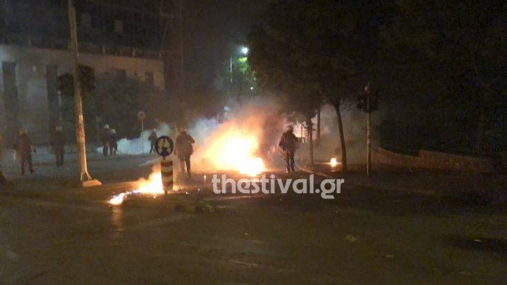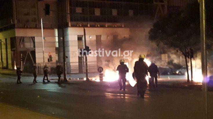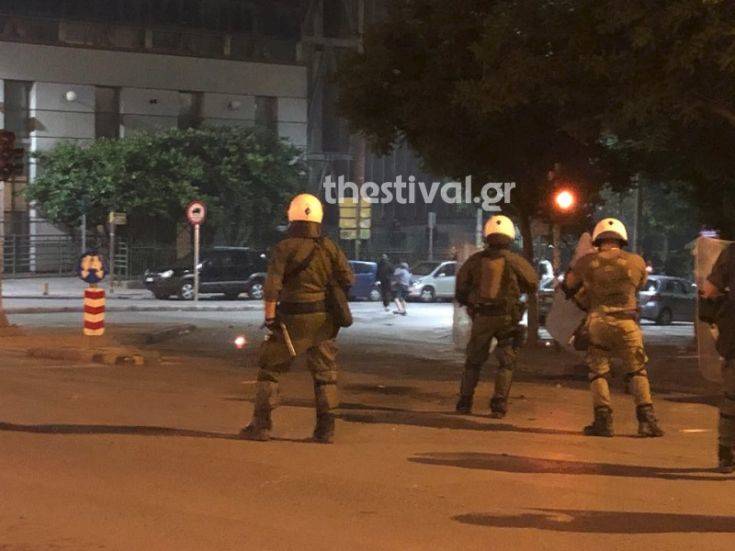 Ομάδα ατόμων, εξήλθε από το ΑΠΘ και κινήθηκε προς τη στατική διμοιρία των ΜΑΤ, μπροστά από το Τουρκικό Προξενείο, πετώντας βόμβες μολότοφ.