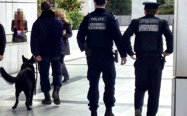 Οι ενισχυμένες περιπολίες με τους σκύλους γίνονται σε σημαντικά κτήρια, σε πλατείες, στα δικαστήρια στο πλαίσιο των ερευνών της Αστυνομίας.