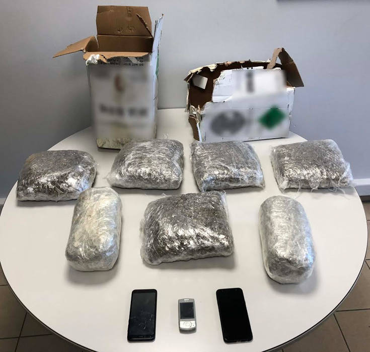 Στην κατοχή του και σε ένα παράπηγμα που χρησιμοποιούσε για την απόκρυψη ναρκωτικών ουσιών βρέθηκαν και κατασχέθηκαν επτά δέματα ακατέργαστης κάνναβης συνολικού βάρους 7.371 γραμμαρίων και τρία κινητά τηλέφωνα.