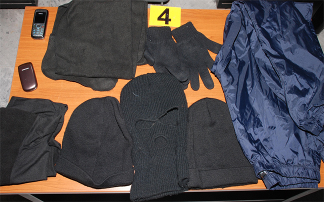 Στην κατοχή των δραστών βρέθηκαν και κατασχέθηκαν συνολικά: δύο σκούφοι, μία κουκούλα τύπου full face, δύο κασκόλ, δύο κινητά τηλέφωνα, ένα αδιάβροχο παντελόνι και ένα ζευγάρι γάντια καθώς και τα προαναφερόμενα δίκυκλα οχήματα.