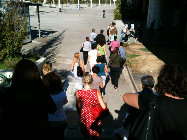 Οι επιβάτες έχουν φτάσει στην Ειρήνη και κατευθύνονται προς τον ηλεκτρικό σταθμό για να συνεχίσουν το… ταξίδι τους.