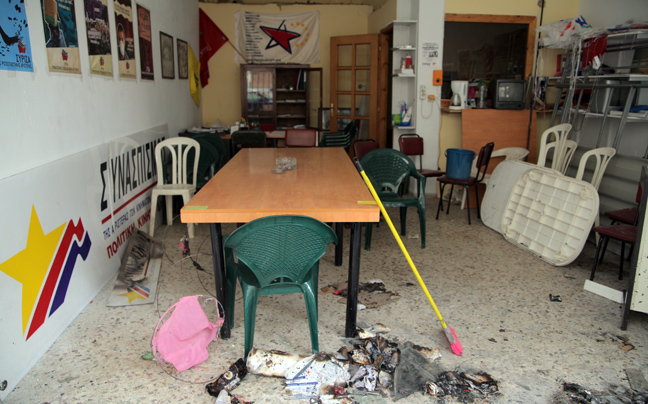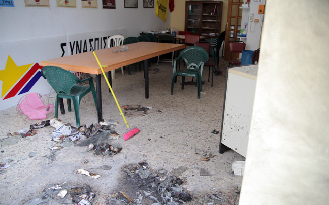 Εμπρηστική επίθεση σημειώθηκε στη 01.30 τα ξημερώματα σε γραφεία του ΣΥΡΙΖΑ επί της οδού Χίου 37 στη Δάφνη.