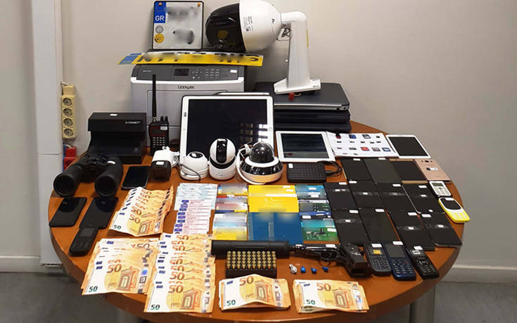 Από τις αστυνομικές έρευνες, σε οικίες και χώρους, βρέθηκαν και κατασχέθηκαν, μεταξύ άλλων, πλαστά και απολεσθέντα ελληνικά δελτία ταυτότητας, ελληνικές άδειες οδήγησης, κάρτες τραπεζών, βιβλιαρίων τραπεζών, συσκευή ελέγχου γνησιότητας εγγράφων, μικροποσότητα ηρωίνης, πιστόλι, πλήθος ψηφιακών μέσων, καθώς και το χρηματικό ποσό των 5.030 ευρώ.