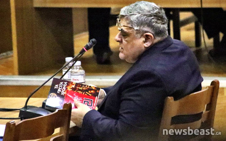 Ένα βιβλίο για τη Χρυσή Αυγή είχε μπροστά του ο αρχηγός της οργάνωσης Νίκος Μιχαλολιάκος, ο οποίος κάθεται σήμερα στο εδώλιο του κατηγορουμένου, στη δίκη της Χρυσής Αυγής, απολογούμενος ενώπιον του Τριμελούς Εφετείου Κακουργημάτων.