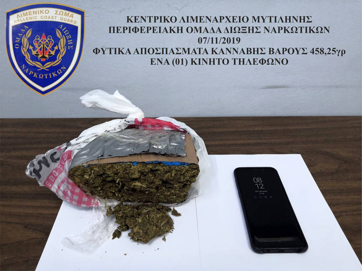 Συγκεκριμένα, κατά τη διενέργεια ελέγχου με τον κατάπλου πλοίου στο λιμάνι της Μυτιλήνης, εντοπίστηκε ο άνδρας να κατέχει στις αποσκευές του μία πλαστική συσκευασία περιέχουσα φυτικά αποσπάσματα κάνναβης, συνολικού βάρους 458,25 γραμμαρίων.