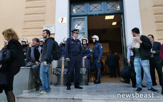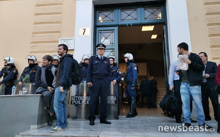 Πλήθος κόσμου έχει συγκεντρωθεί στα δικαστήρια στην Ευελπίδων όπου εκδικάζονται οι υποθέσεις των δύο φοιτητών που συνελήφθησαν σε σχέση με τα επεισόδια που σημειώθηκαν πριν από μερικές ημέρες στην ΑΣΟΕΕ.