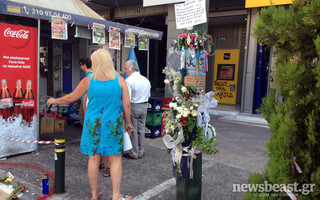 Από χτες, στη λεωφόρο Παναγή Τσαλδάρη, στο σημείο που σημειώθηκε ο θάνατος του νεαρού, πολίτες αφήνουν λουλούδια και κεριά, αναρτούν πανό και γράφουν συνθήματα για το άδικο τέλος του Θανάση.