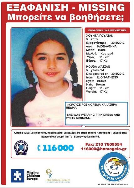 Την Παρασκευή 30 Αυγούστου εξαφανίστηκε από το Ίλιον στην Αθήνα, η 5χρονη Χουντά Γουαζάν.