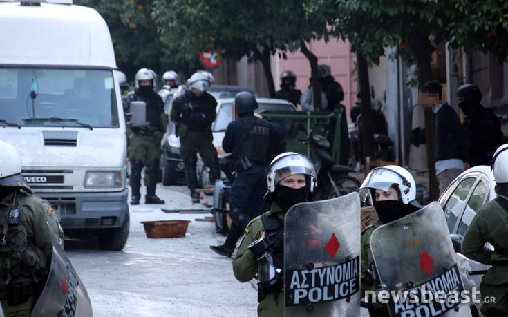 Οι αστυνομικοί έκαναν χρήση χειροβομβίδων κρότου λάμψης και χημικών. Σύμφωνα με πληροφορίες που επικαλείται το ΑΜΠΕ, έχουν βρεθεί και στο κτίριο της οδού Αρβάλη δύο άτομα τα οποία, όμως, δεν προέβαλαν αντίσταση.