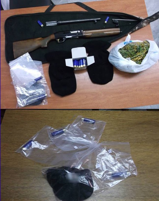 Επιπλέον, σε αγροτική περιοχή βρέθηκαν και κατασχέθηκαν μία θήκη όπλου, τύπου «παραλλαγής», κρυμμένη σε θαμνώδη βλάστηση, στο εσωτερικό της οποίας υπήρχε η κυνηγετική καραμπίνα κομμένη και δύο ολοπρόσωπες κουκούλες που χρησιμοποιήθηκαν τόσο για τη διάπραξη της ληστείας στα ΕΛ.ΤΑ., όσο και για την απόπειρα ανθρωποκτονίας σε βάρος του 37χρονου, καθώς και 20 φυσίγγια κυνηγετικού όπλου. Όπως διαπιστώθηκε η κυνηγετική καραμπίνα είχε κλαπεί από αγροικία στην ευρύτερη περιοχή του Βόλου.
