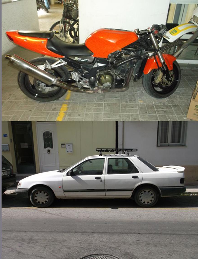 -η μοτοσικλέτα μεγάλου κυβισμού με την οποία οι δράστες μετέβησαν στα ΕΛ.ΤΑ. και στη συνέχεια διέφυγαν.