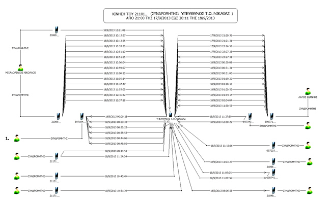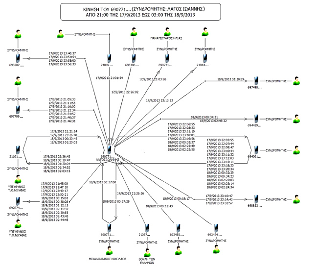 Αποκαλυπτικά, για τις επικοινωνίες που έγιναν μεταξύ των στελεχών και άλλων μελών της Χρυσής Αυγής και ενδεικτικά για τον ρόλο του καθενός, πριν από τη δολοφονία του Παύλου Φύσσα, στο Κερατσίνι, αλλά και ενδεικτικά του αναβρασμού που επικράτησε λίγη ώρα μετά, θεωρούνται από τις Αρχές, δύο διαγράμματα που έδωσε στη δημοσιότητα η Αστυνομία. Σε αυτά φαίνονται οι τηλεφωνικές επαφές από τα τηλέφωνα του βουλευτή, Γιάννη Λαγού, και του προέδρου της Τοπικής Οργάνωσης Νίκαιας, Γιώργου Πατέλη.