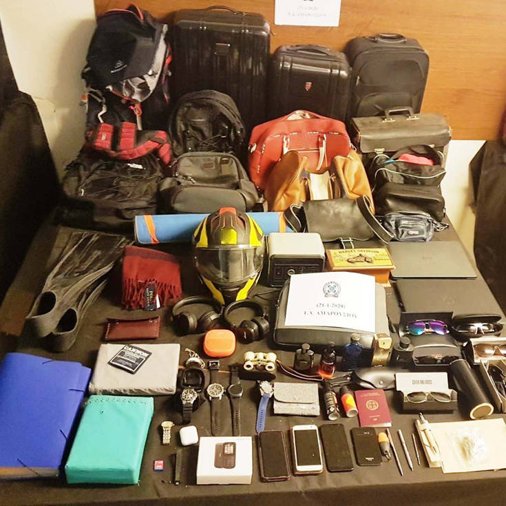 - μεγάλος αριθμός από βαλίτσες, τσάντες, ηλεκτρονικές συσκευές, γυαλιά ηλίου, κοσμήματα και ενδύματα