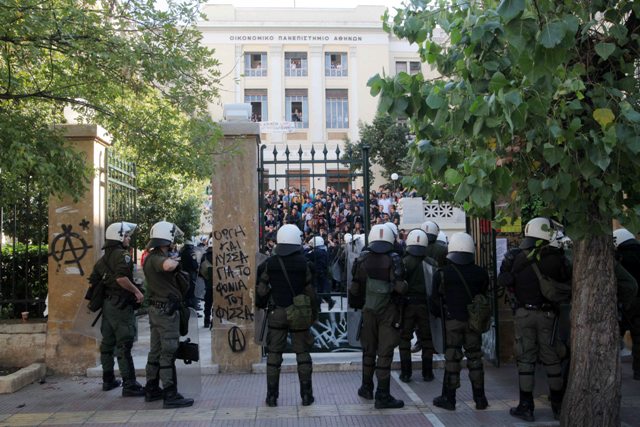 Ένας αλλοδαπός συνελήφθη άμεσα. Οι υπόλοιποι προσπαθώντας να αποφύγουν τη σύλληψη επιτέθηκαν στους αστυνομικούς που πρώτοι προσέγγισαν το σημείο και στη συνέχεια επιχείρησαν να βρουν καταφύγιο στον προαύλιο χώρο του πανεπιστημίου.