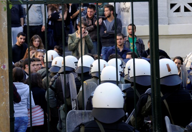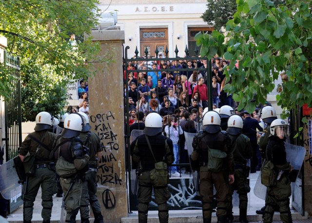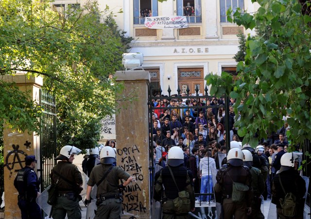 Οι αστυνομικοί μπήκαν στην ΑΣΟΕΕ, όπου και συνέλαβαν τέσσερις, κατά την προσπάθεια διαφυγής τους, από την έξοδο της οδού Αντωνιάδου.