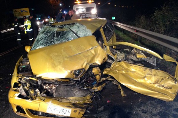 Το Ι.Χ. συγκρούστηκε μετωπικά με φορτηγό που έρχονταν από το αντίθετο ρεύμα κυκλοφορίας και στη συνέχεια έπεσαν πάνω στο λεωφορείο του ΚΤΕΛ.