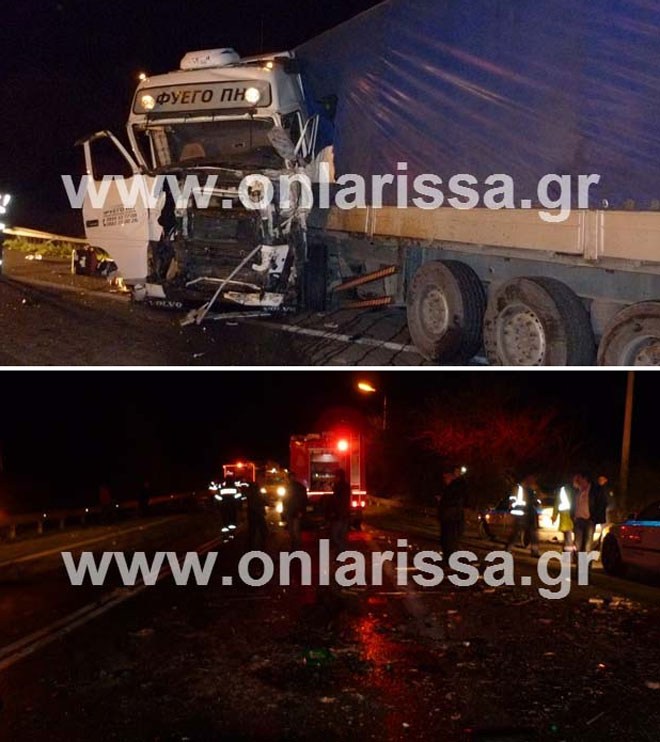 Ο οδηγός του ΙΧ σκοτώθηκε επί τόπου. Σύμφωνα με τις πρώτες πληροφορίες, σοβαρά τραυματισμένο ανασύρθηκε ένα κοριτσάκι από το μοιραίο ΙΧ., ενώ σοβαρά τραυματίστηκε και ο οδηγός του φορτηγού καθώς επίσης και ένας επιβάτης του λεωφορείου του ΚΤΕΛ. Επίσης στα δυο νοσοκομεία της Λάρισας διακομίσθηκαν και άλλοι επιβάτες του λεωφορείου, που τραυματίστηκαν ελαφρά.