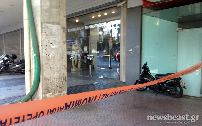 Οι αστυνομικοί ερευνούν τους χώρους του Βιομηχανικού και Εμπορικού Επιμελητηρίου ενώ ο δρόμος είναι κλειστός για τα αυτοκίνητα από την οδό Λυκαβηττού.