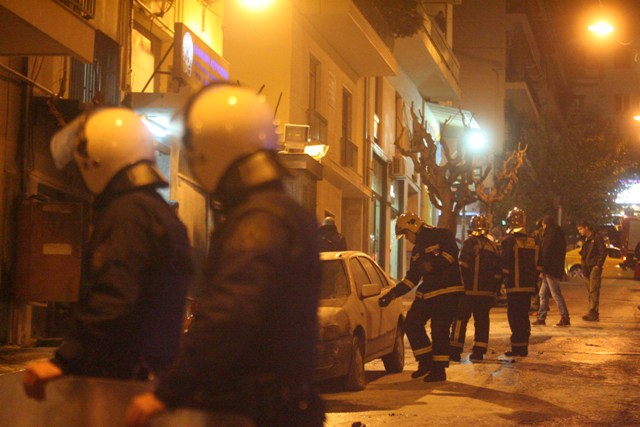 Από όσα έχουν γίνει γνωστά έως τώρα, έχουν προκληθεί μόνο υλικές ζημιές σε σταθμευμένα αυτοκίνητα έξω από το αστυνομικό τμήμα Εξαρχείων.