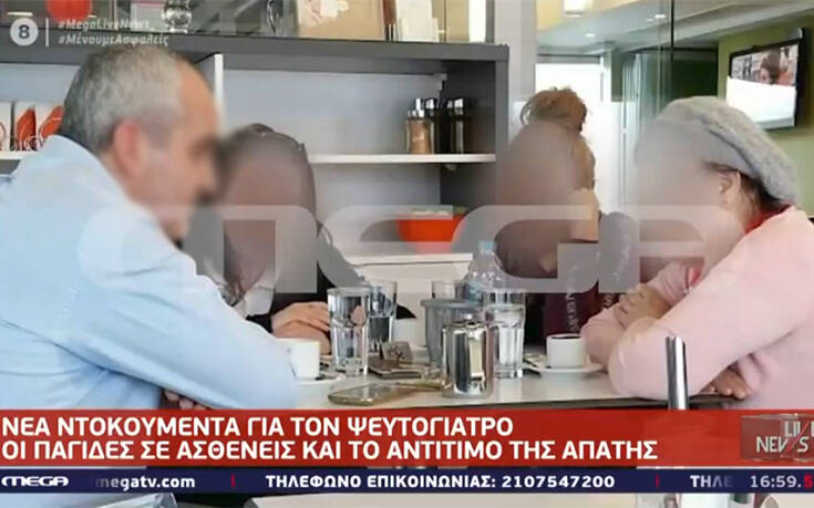 Όπως ανέφερε το ρεπορτάζ του καναλιού στη φωτογραφία ο ψευτογιατρός, ο 47χρονος επιχειρεί να πείσει την γυναίκα στα δεξιά, που έχει το πρόβλημα υγείας και τις δυο γυναίκες που την συνοδεύουν. Λίγο νωρίτερα, είχε βάλει σε σειρά προτεραιότητας και άλλα υποψήφια θύματα, που τον περίμεναν στα διπλανά τραπέζια της καφετέριας. «Πιείτε ένα καφέ κι έρχομαι», τους έλεγε χαρακτηριστικά.