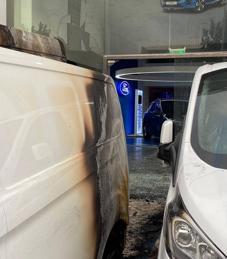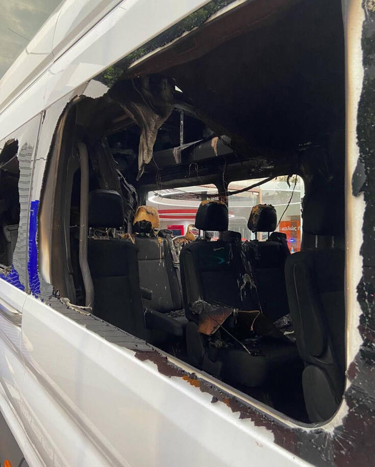 Άγνωστοι πυρπόλησαν αυτοκίνητα της έκθεσης με αποτέλεσμα να καταστραφούν τρία βαν. Στην επιχείρηση κατάσβεσης συμμετείχαν 10 πυροσβέστες με 3 οχήματα.