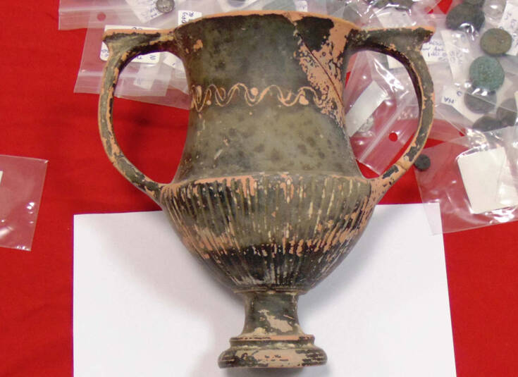 - αγγείο που χαρακτηρίζεται ως κάνθαρος και ανάγεται στην Ελληνιστική περίοδο (3ος αιώνας π.Χ.).
