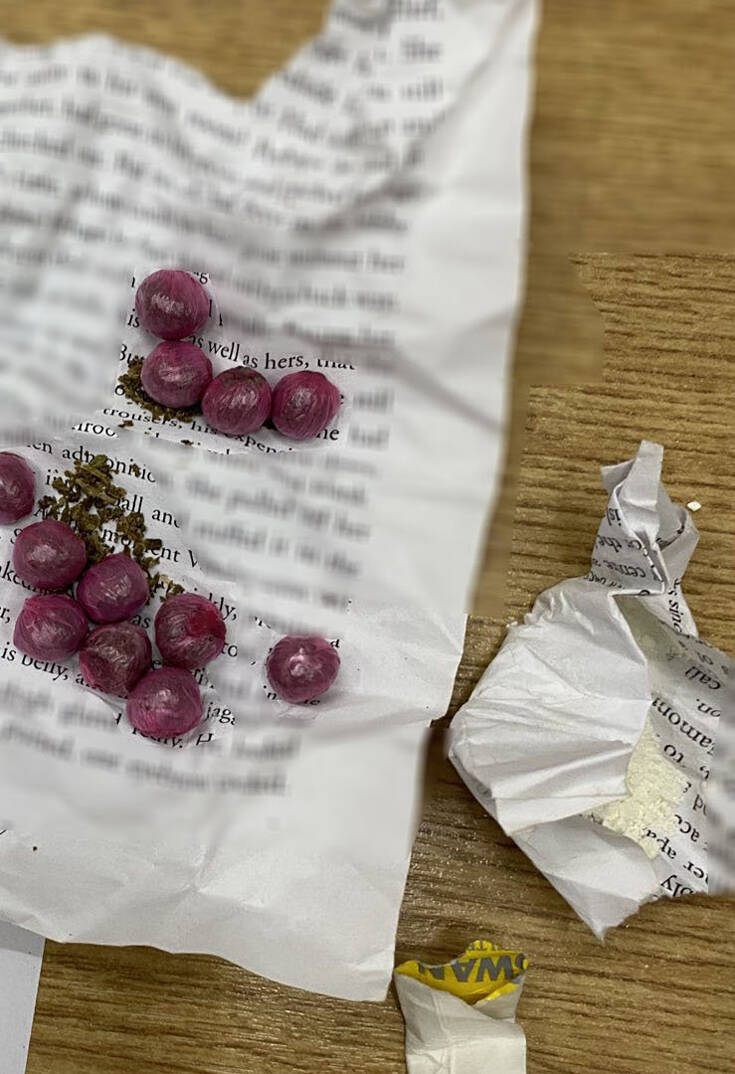 - (3,2) γραμμάρια λευκής σκόνης (πιθανόν ναρκωτικής ουσίας),
