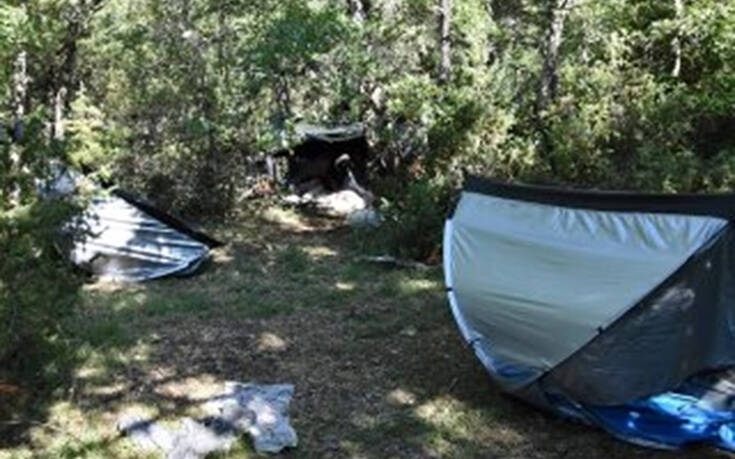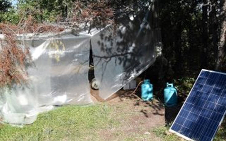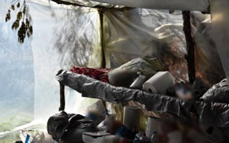 Κοντά στη φυτεία εντοπίστηκαν πέντε πρόχειρα παραπήγματα, που χρησιμοποιούσαν οι δράστες για τη διαβίωσή τους, αλλά και ως παρατηρητήρια για τη φύλαξη των φυτειών.