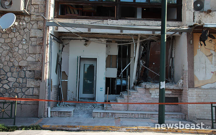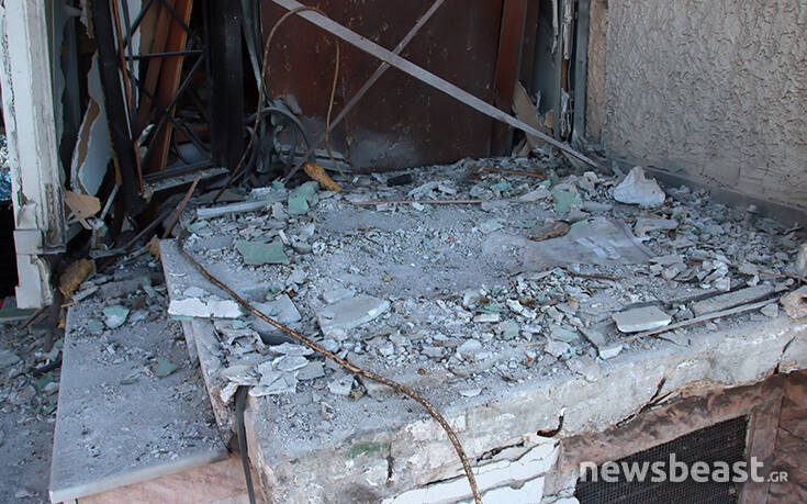 Η έκρηξη είχε τόση ισχύ που κομμάτια από τη βόμβα, όπως μετέδωσε η ΕΡΤ, βρέθηκαν 5 με 6 μέτρα απέναντι από την εταιρεία.