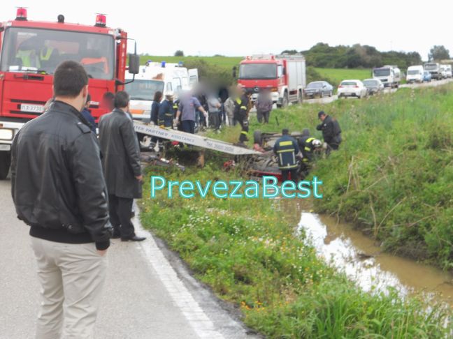 Αμέσως ειδοποιήθηκε η οδική βοήθεια, ασθενοφόρα του ΕΚΑΒ Πρέβεζας καθώς και πυροσβεστικά οχήματα από την Πρέβεζα και την Λευκάδα προκειμένου να συμβάλουν στον απεγκλωβισμό.