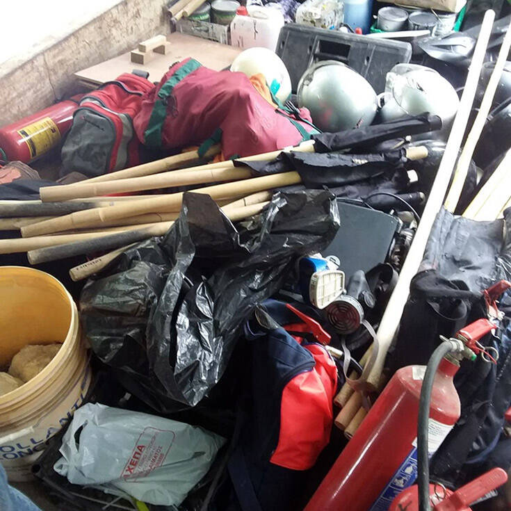 - πλήθος από κράνη, πυροσβεστήρες και αντιασφυξιογόνες μάσκες,