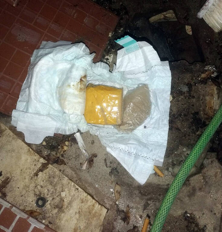 Σημειώνεται ότι, στο πλαίσιο των ερευνών, εντοπίστηκαν οι ποσότητες των ναρκωτικών ουσιών επιμελώς κρυμμένες σε στήριγμα νιπτήρα εξωτερικής τουαλέτας και σε χρησιμοποιημένη βρεφική πάνα.