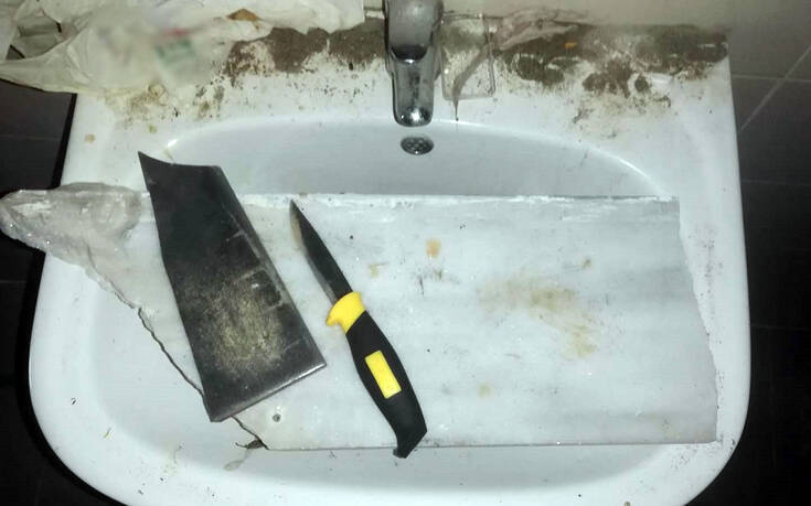 - μαχαίρι και δύο κομμάτια πλακιδίων με υπολείμματα ναρκωτικών