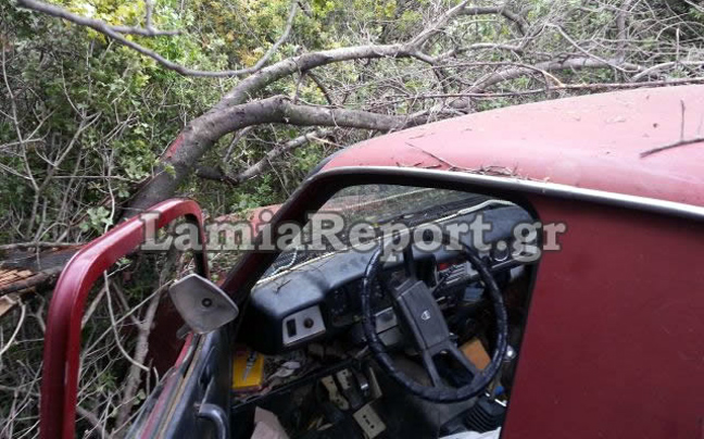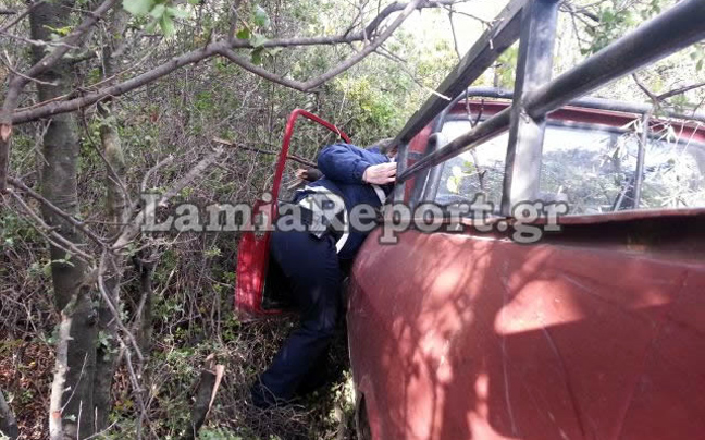 Το παλιό αγροτικό διέσχισε μια απόσταση περίπου 60 μέτρων ανάμεσα από δέντρα και πουρνάρια και την τρελή πορεία του σταμάτησε η πυκνή δασική βλάστηση σύμφωνα με το lamiareport.gr.