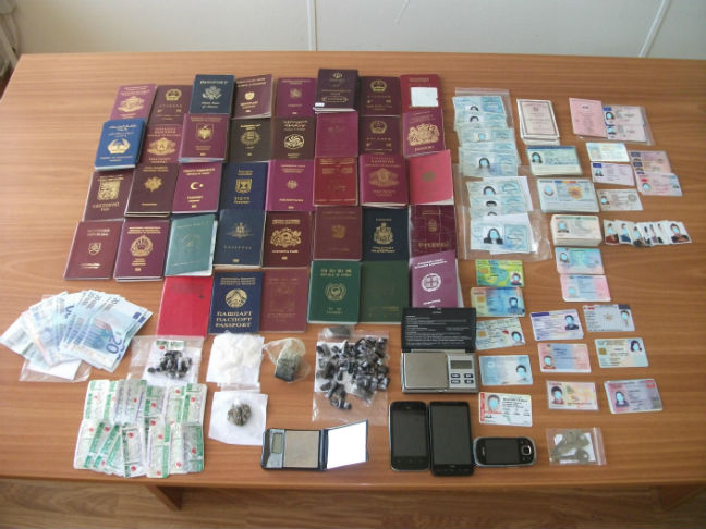 Σε οικία που χρησιμοποιούσε αποκλειστικά σαν χώρο απόκρυψης ναρκωτικών (καβάτζα), βρέθηκε και κατασχέθηκε επίσης πλήθος πλαστών και κλεμμένων διαβατηρίων, ταυτοτήτων και αδειών ικανότητας οδήγησης, ημεδαπών και αλλοδαπών, προερχόμενα τα γνήσια αυτών από κλοπές, με σκοπό την παραποίηση και την πώληση τους σε αλλοδαπούς, διευκολύνοντας κατ’ αυτό τον τρόπο την παράνομη διαμονή τους.