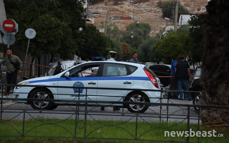 Αστυνομικοί του τμήματος Ανθρωποκτονιών της Διεύθυνσης Ασφάλειας Αττικής βρίσκονται στη συμβολή της λεωφόρου Θησέως με την οδό Κανακίδου στην Καλλιθέα, όπου εκτελέστηκε ο 60χρονος «Απάτσι», που ήταν παλιός γνώριμος των Αρχών.