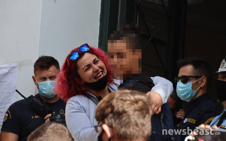 Μπροστά στο κτίριο 9 στα Δικαστήρια της Σχολής Ευελπίδων εξελίχθηκε συγκέντρωση διαμαρτυρίας και οι συγκεντρωμένοι ξέσπασαν σε χειροκροτήματα τη στιγμή που ο 14χρονος Βαγγέλης αφέθηκε ελεύθερος με τη συνοδεία της μητέρας του.