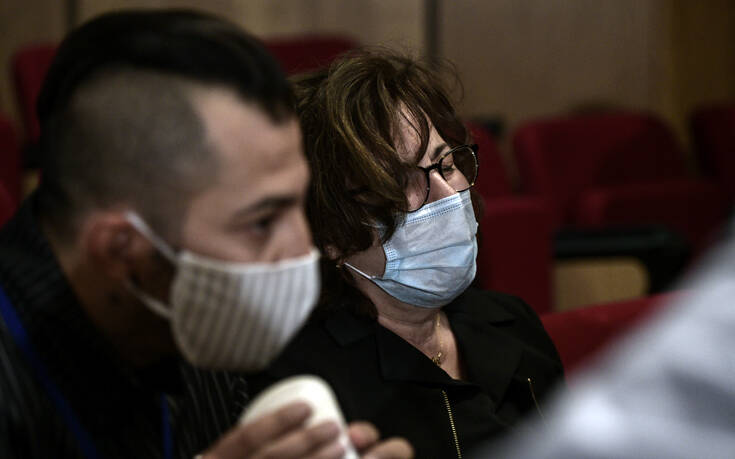 Στο πλευρό της είναι συγγενείς, δικηγόροι και φίλοι του Παύλου Φύσσα που έπεσαν στην αγκαλιά της μόλις η Πρόεδρος έδωσε τη λήξη της συνεδρίασης.