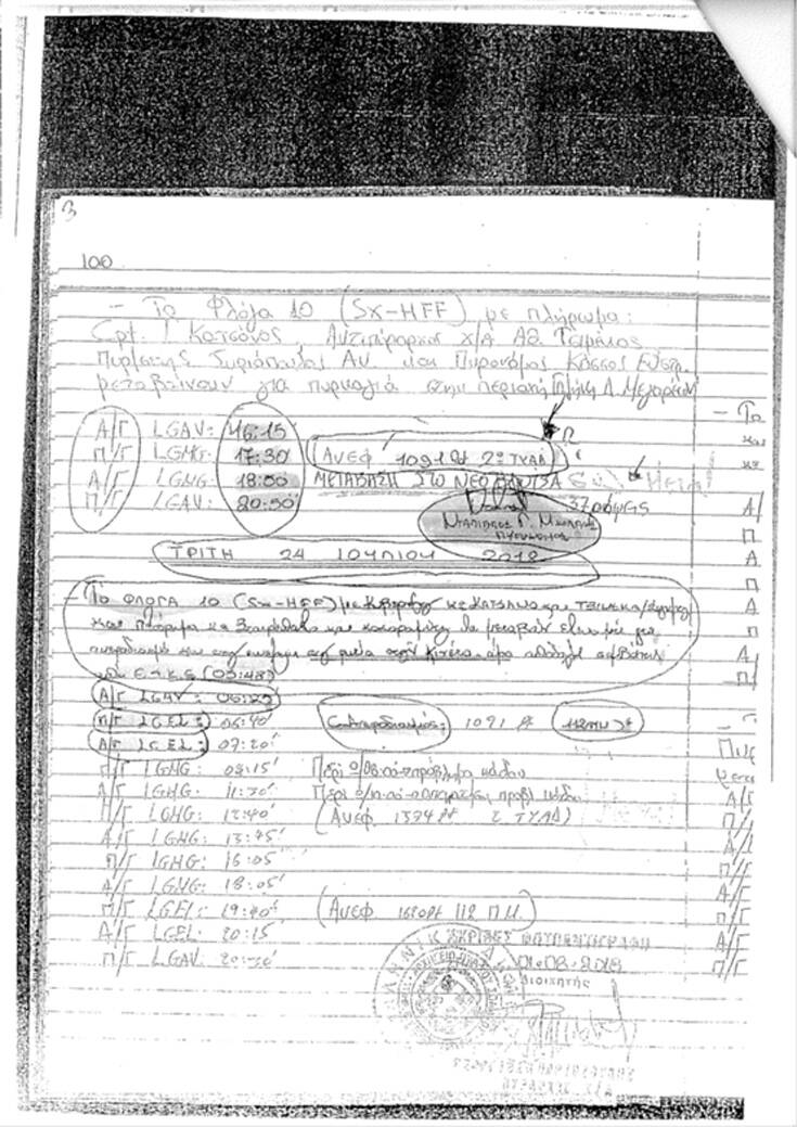 Στην πολυσέλιδη αίτηση της η κ. Φύτρου υποστηρίζει πως υπήρξε πλαστογραφία του ημερολογίου της Υπηρεσίας Εναερίων Μέσων Πυροσβεστικού Σώματος της 23ης Ιουλίου 2018, στο σημείο που αναγράφεται «ΜΕΤΑΒΑΣΗ ΣΤΟ ΝΕΟ ΒΟΥΤΣΑ 37 ρίψεις». Μάλιστα, επικαλείται τις καταθέσεις δυο πυροσβεστών, που ήταν υπεύθυνοι για την τήρηση του ημερολογίου, οι οποίοι διαψεύδουν ότι έγραψαν την συγκεκριμένη φράση «δείχνοντας» ως υπεύθυνο για την προσθήκη τον Διοικητή της Υπηρεσίας Εναέριων Μέσων του Πυροσβεστικού Σώματος Γ.Π. ο οποίος, όπως αναφέρει, δεν συμμετείχε στην επιχείρηση κατάσβεσης, αλλά ξεναγούσε μία επισκέπτρια στο αεροδρόμιο Ελ.Βενιζέλος.
