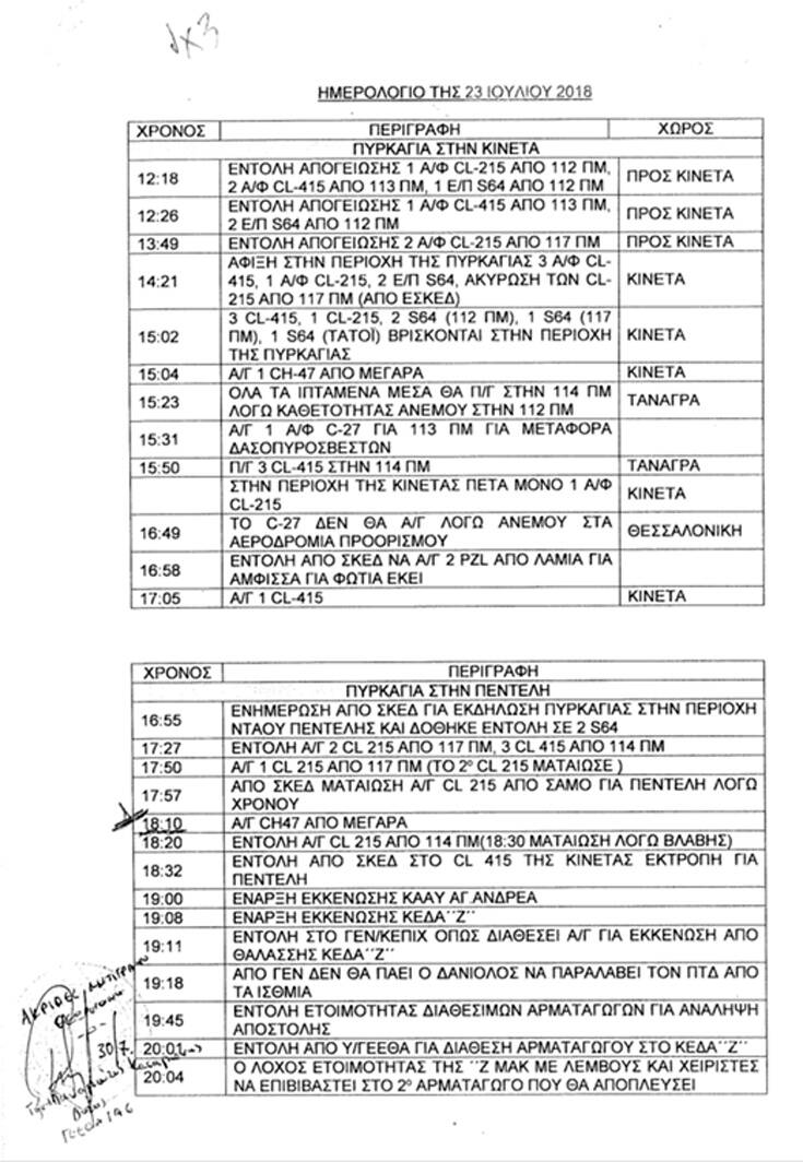 «Η αναφορά στο ημερολόγιο είναι ψευδής. Είναι ψευδές ότι έγιναν 37 ρίψεις. Είναι ψευδές ότι ο Γ. Π., κατά τις κρίσιμες ώρες της πυρκαγιάς, ασχολήθηκε με την κατάσβεση του μετώπου. Η αλήθεια είναι ότι πλαστογράφησε ο Γ.Π. ή ο εντεταλμένος του το ημερολόγιο της ΥΕΜΠΣ, προκειμένου να δημιουργήσει ενώπιόν Σας την ψευδή εντύπωση, ότι ουδόλως επέδειξε δόλια συμπεριφορά και ότι αδιαφόρησε να ασκήσει τα καθήκοντά του.» αναφέρει χαρακτηριστικά στην αίτηση.