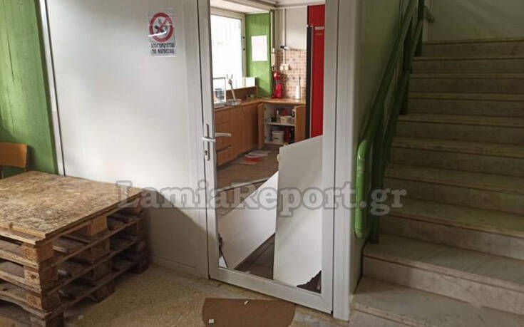 Πρόκειται για το κυλικείο του 4ου Γυμνασίου Λαμίας, στο οποίο οι άγνωστοι δράστες έφτασαν αφού πρώτα παραβίασαν το κάγκελο και την πόρτα του Γυμναστηρίου.