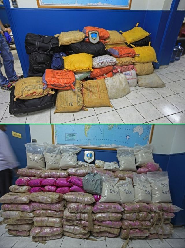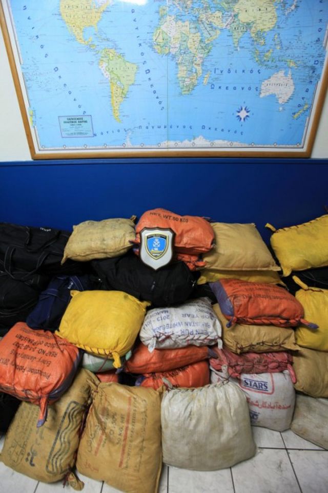 Στη δημοσιότητα έδωσε το Λιμενικό Σώμα φωτογραφίες από την τεράστια ποσότητα ηρωίνης που κατέσχεσε σήμερα στο πλαίσιο της ευρείας έρευνας που πραγματοποίησε σε συνεργασία με την Υπηρεσία Δίωξης Ναρκωτικών των ΗΠΑ και το ΣΔΟΕ στην Αττική για την εξάρθρωση του μεγάλου κυκλώματος ναρκωτικών.
